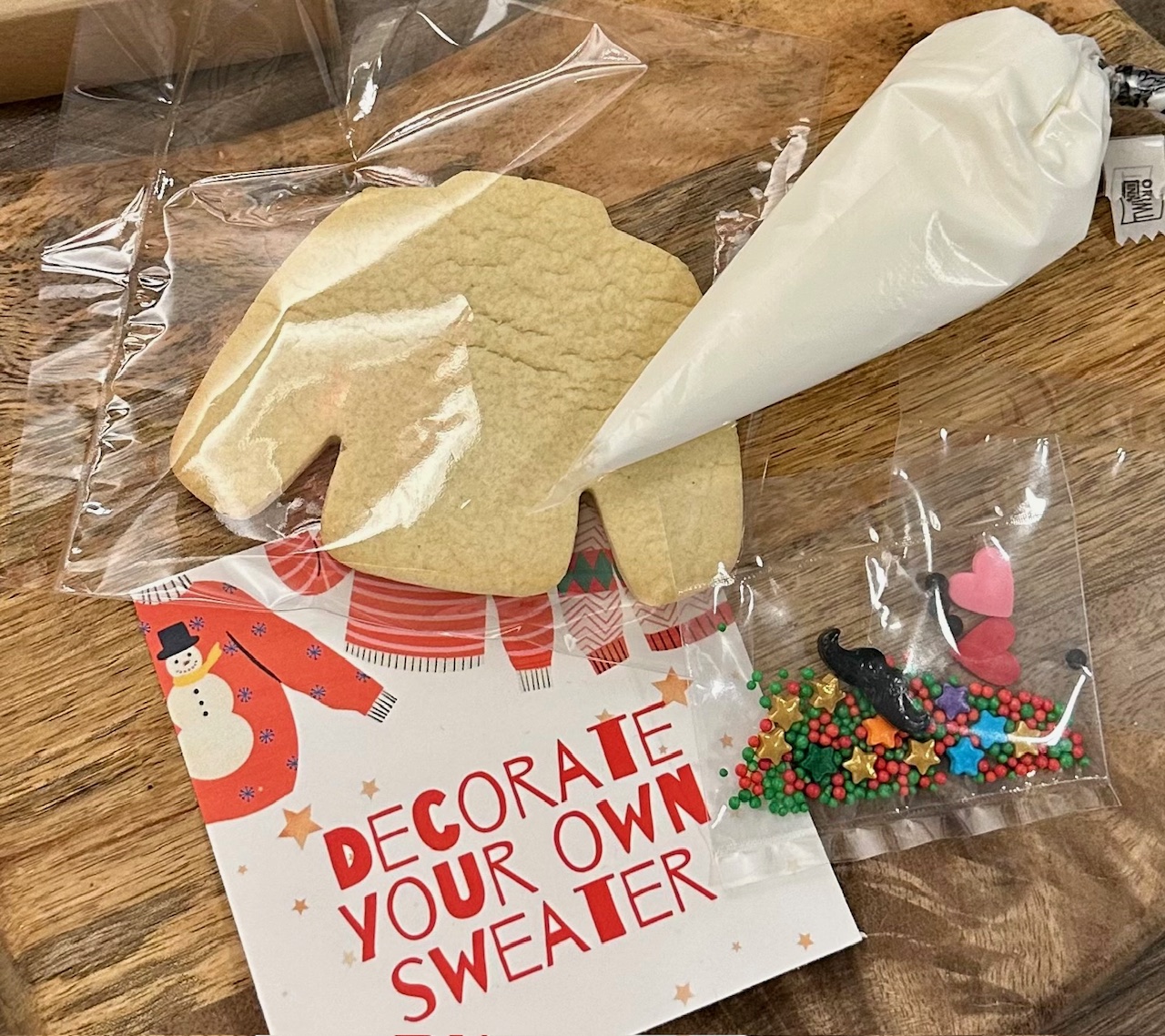 Decorate your own ugly Christmas sweater with this DIY kit complete with one lemon drop cookies, one white icing and assorted sprinkles!
